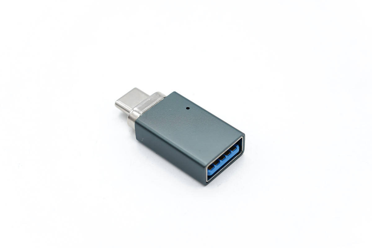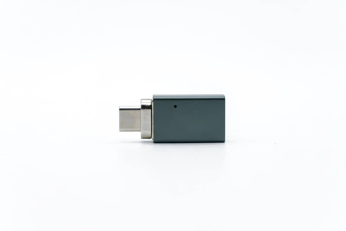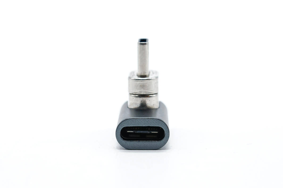 Vstupní konec adaptéru obsahuje zásuvkový port USB-C pro připojení kabelů.