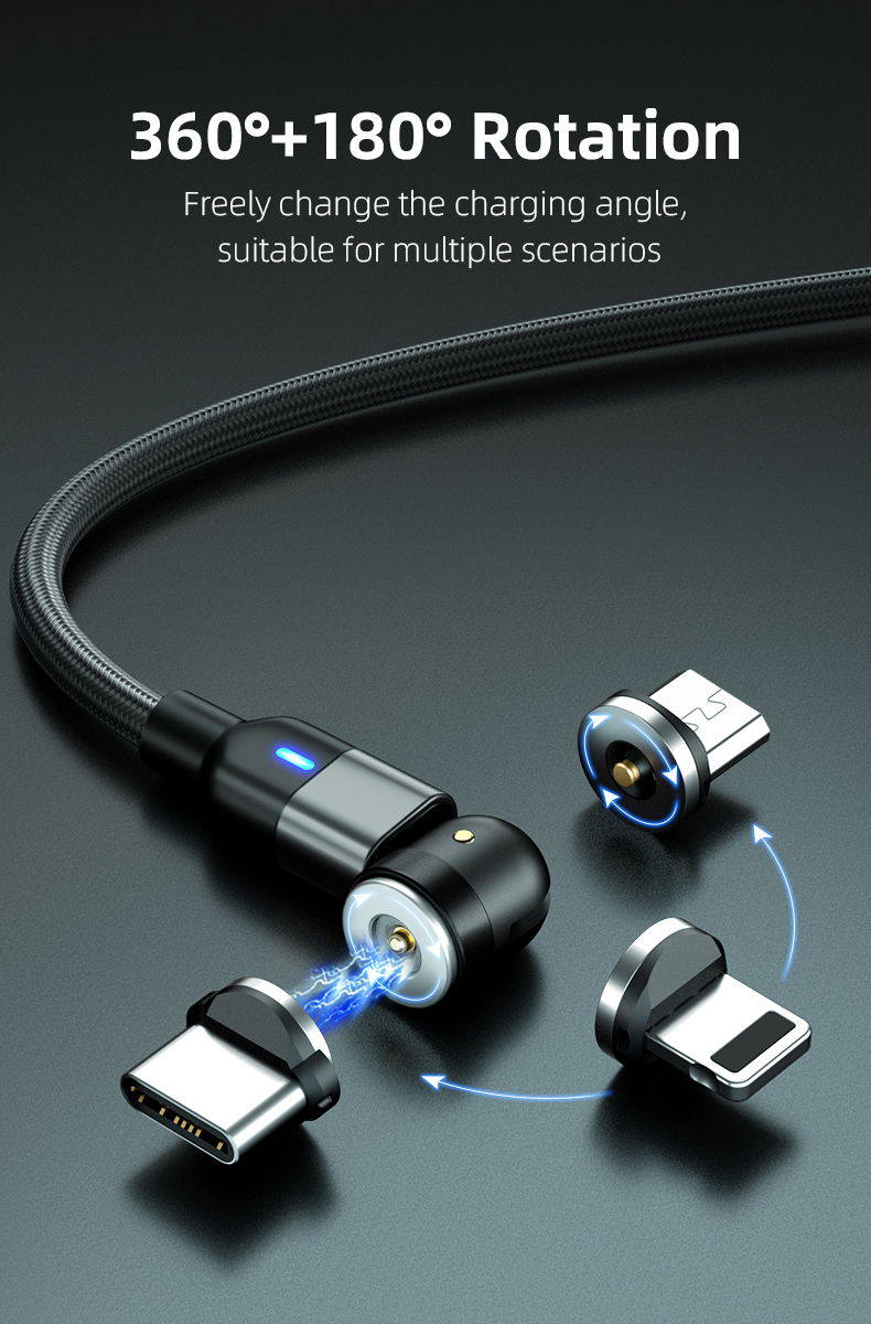 540stupňové otočné 3 v 1 magnetické rychlé nabíjení Pogo Pin kabely