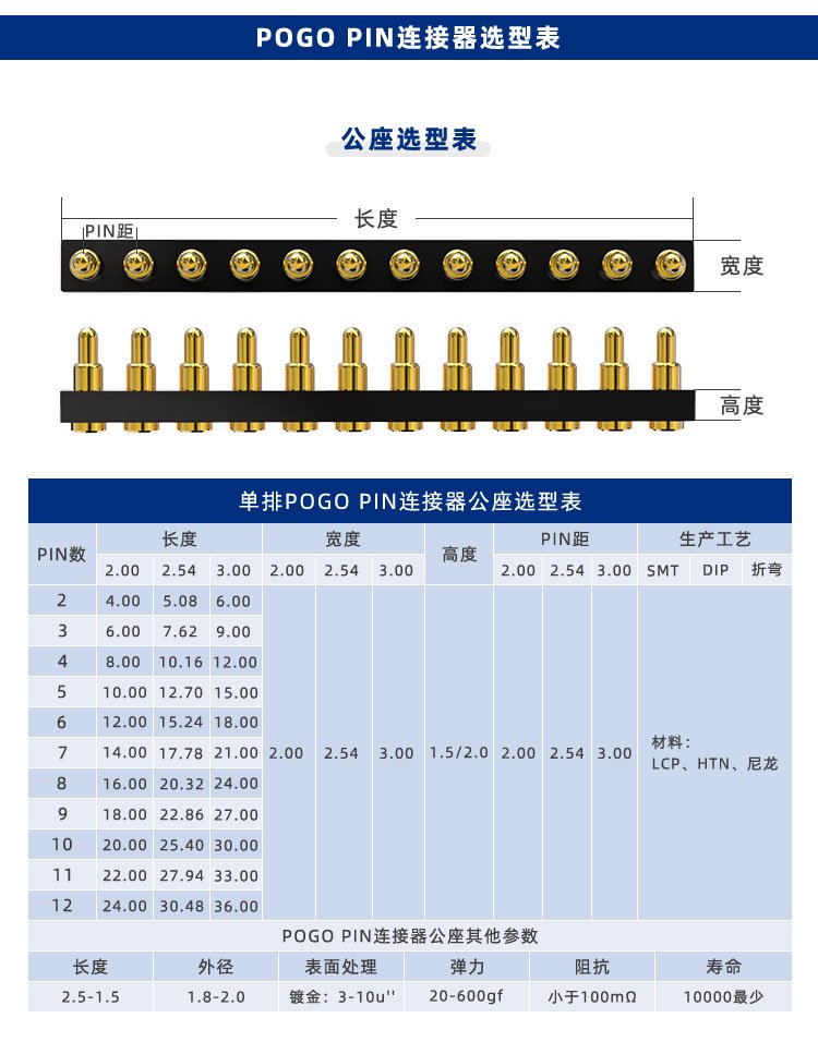 Profesionálně navrhujeme, vyrábíme a prodáváme nabíjecí kolíky pogo kolíků mobilních telefonů, kolíky baterie, kolíky antény a další kolíky a konektory pogo. Vysokonapěťový nabíjecí kolík Zástrčkové a zásuvkové konektory mají vlastnosti malé velikosti, velkého proudu, silných kontaktů a stabilního výkonu.